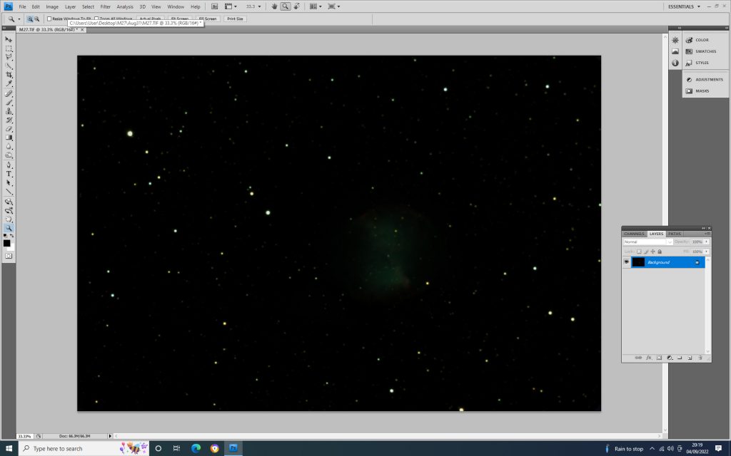 I tend to use my (now quite old) academicversion of Adobe Photoshop CS4 for image processing and will go through thesteps I took using it, but Affinity Photo, Siril and even, now, the freeprogram Glimpse could be used. I willrefer to some aspects of these when applicable.
